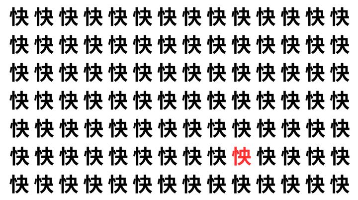たくさんの「快」の中に、よく似た別の漢字が1文字だけ隠れています。