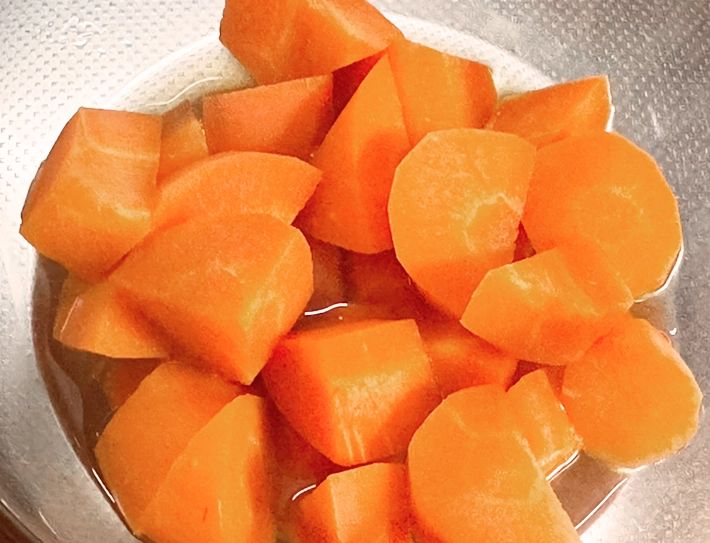 この時、できるだけニンジンは均等に一口大にするのがおすすめ。