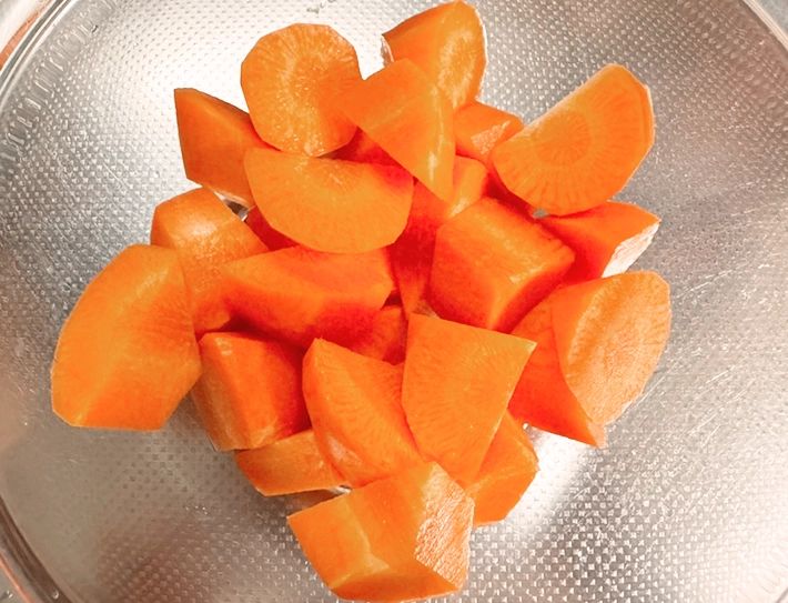乱切りしたニンジンを電子レンジに入れるだけで完成!