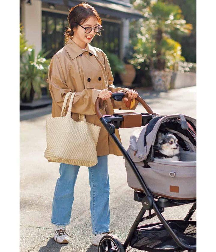TRENCH COAT/ELLIE、DENIM/RED CARD TOKYO、BAG/MARREA、SNEAKERS/miu miu、SUNGLASSES/miu miu