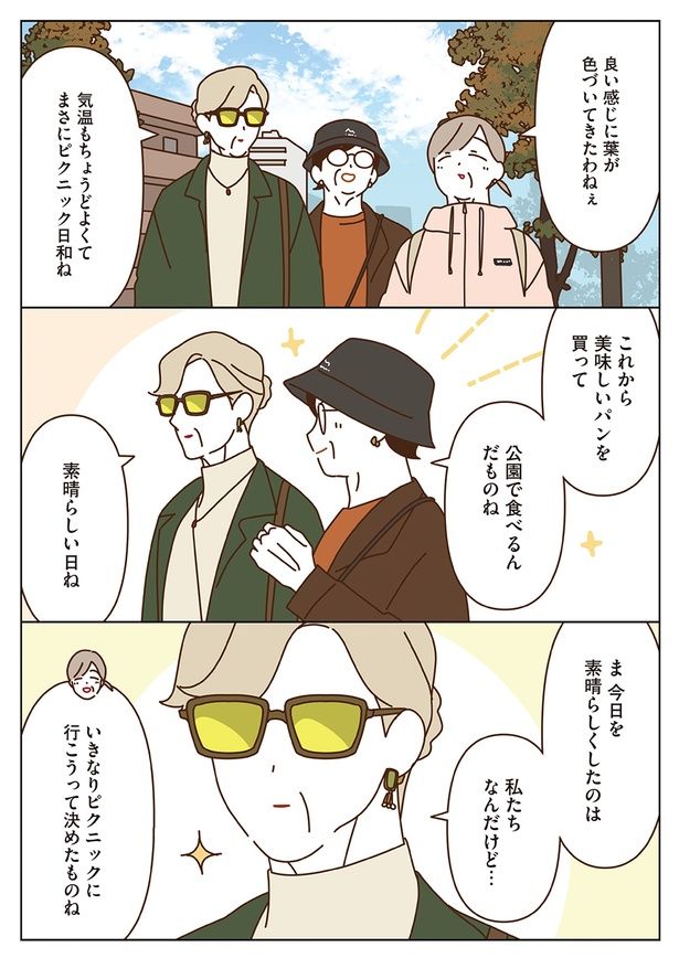 いくつになっても、女友達は最高! 学生時代に出会った3人のマダム。個性豊かな彼女たちが、ひとつ屋根の下で一緒に暮らしたら…。パジャマパーティーをしてみたり、クリスマスやひな祭りなど季節の行事を楽しんだり。それぞれ人生経験を積んできたマダムたちのルームシェアライフは、今日も楽しいことでいっぱい。「私も将来こうなりたい」の声続出! 歳をとるのが楽しみになる『マダムたちのルームシェア』を、ご好評につき再連載。さらに最新6巻から新たなエピソードを追加してお届けします。