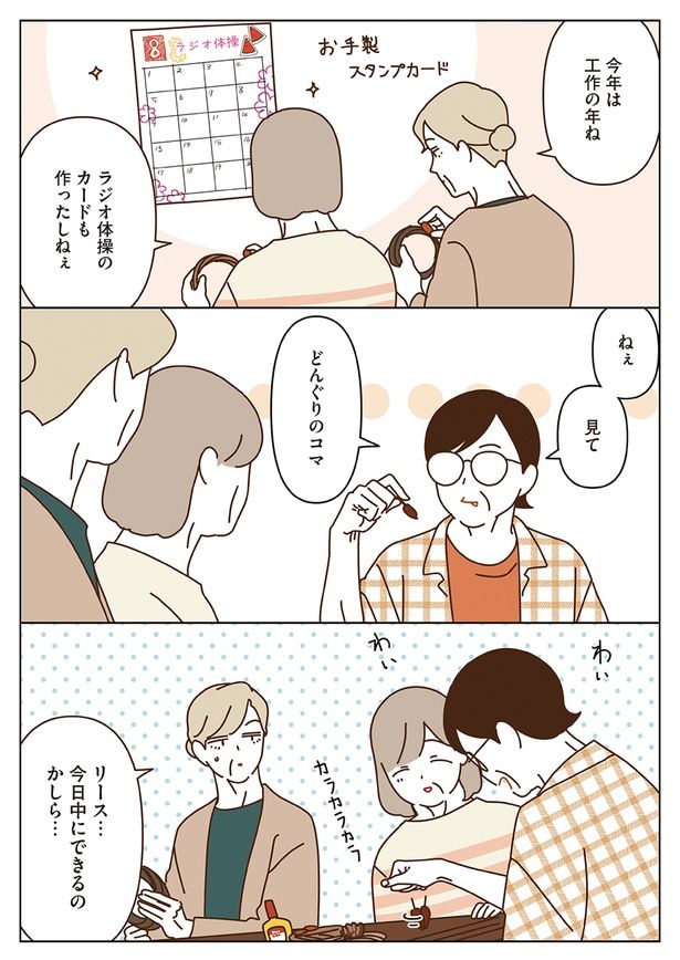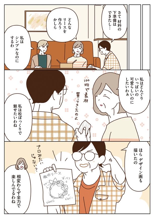 大人の本気を見せる!? 拾ったドングリや松ぼっくりでマダムたちがリース作り/マダムたちのルームシェア6㊿
