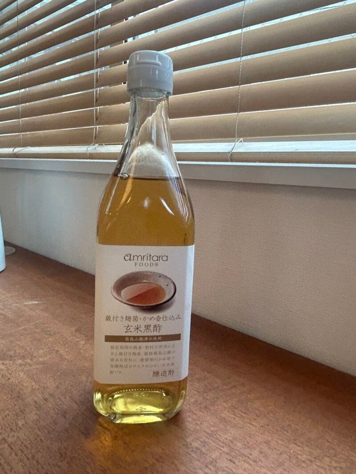 さて次はこちらの玄米黒酢を紹介させていただきます。九州産の「自然栽培玄米」と「蔵付き麹菌」、「霧島山麓の湧水」を使用してじっくり発酵熟成させたお酢で、アムリターラフーズの中でも特に人気が高いアイテムだそう。私は酢の物やドレッシングに使っていますがとてもおいしいです。お酢は量は少なくてもわりと日々の食事に使うものだから、こういったからだによさそうなものを選びたいですね!