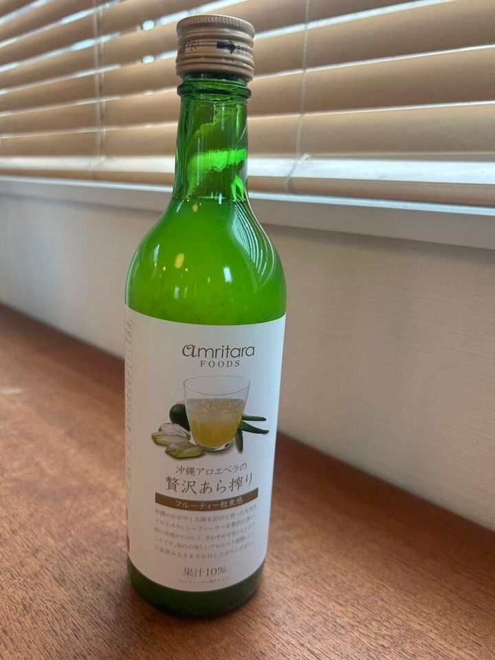 大人になるとジュースってあんまり飲まなくなりますよね。私の場合は普段はだいたい水かお酒しか飲まないのですが、こちらのアロエベラとシークヮーサーのジュースはオススメしたいです!水を一滴も加えずアロエベラを贅沢に80%配合。シークヮーサー果汁とアガベシロップの甘みだけで仕上げたさわやかな酸味と、アロエベラの葉肉の粒触感が何とも言えないおいしさです。もちろん栽培時に農薬や化学肥料を使っていない原材料です。これからの季節、冷蔵庫で冷やしておいしく飲んでください。