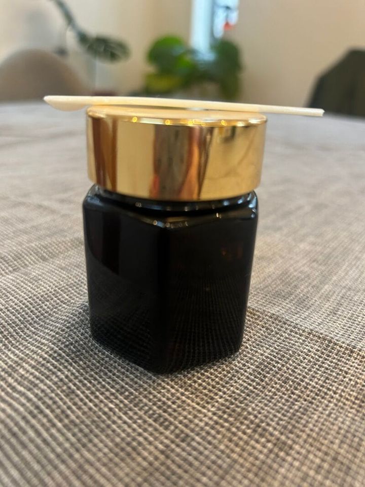 知らない方もいらっしゃると思うので一応中身も撮影してみました。ねっとりべっとり、めっちゃ濃厚なエキスで、付属の小さいスプーンにすくって舐める、というものなのですが、味はといえば目が覚める酸っぱさ。これがまた「効くわ~」という気分になるんです。そしてその後酸っぱさの中に旨みや甘みが広がります。疲れが取れない、風邪をひきそう、なんか調子悪いかも、という時に是非オススメです。私は毎朝のルーティンに取り入れてリピートしていますが、そういえばここ何年か風邪ひいていないですね。