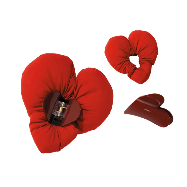 ハート型のヘアクリップに重ねづけできる、ハート型シュシュのセット。