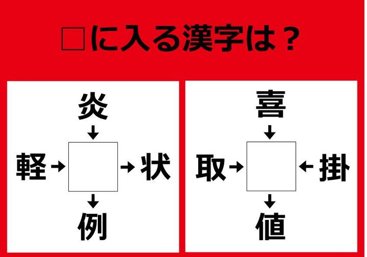 【漢字パズル】軽□、炎□、□状、□例 □に入る漢字は何…!?