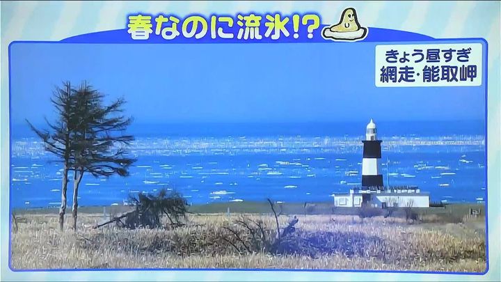 きょうの網走の能取(のとろ)岬です。北風が吹いた網走では、沖に残っていた流氷の一部が陸地に近づきました。きょうの網走の最高気温は7.9度とヒンヤリしました。