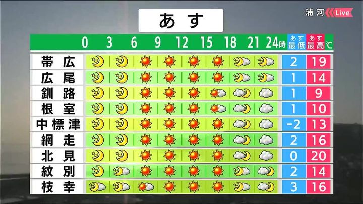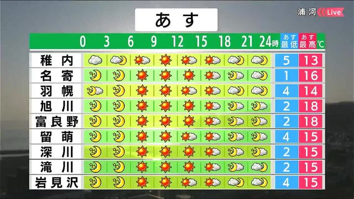 ・あすの札幌の朝昼晩の天気