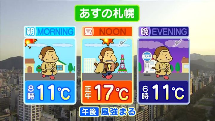 あす17日(金)の札幌です!朝昼晩の天気をもんすけでお伝えします!