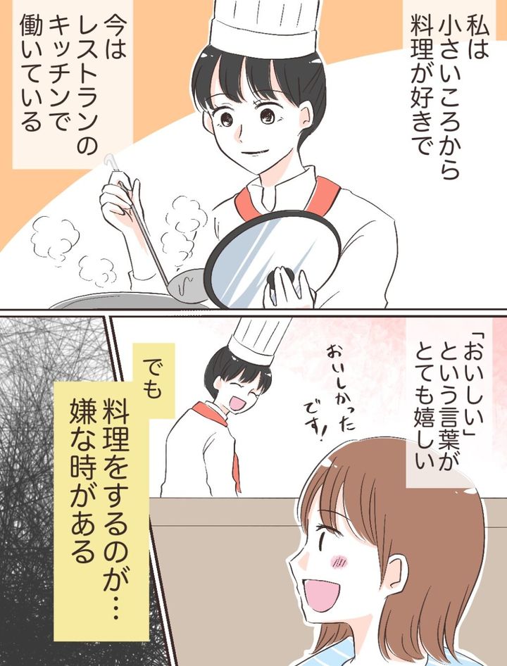 小さい頃からの料理好きが高じて今やレストランのキッチンで働いている私、優奈。お客さんからもらえる「おいしい」の言葉と笑顔が最高に幸せ。それなのに、私には唯一料理をするのが嫌な時があります。
