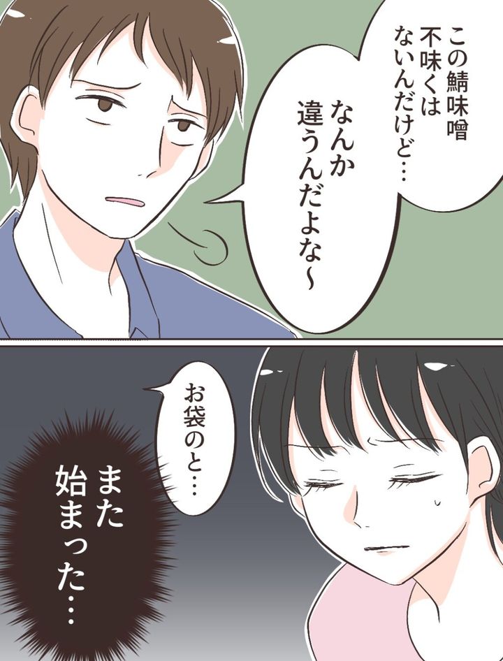 箸を止めて充が言ったのは「不味くはないんだけど、なんか違うんだよな~」という、なんとも曖昧だけれど確実に不満が伝わることば。私は何も言えずに俯きました。充は、私が何を作っても、そしてどれだけ上手にできたと確信しても、義母の味と違うとため息までついて不満を漏らします。
