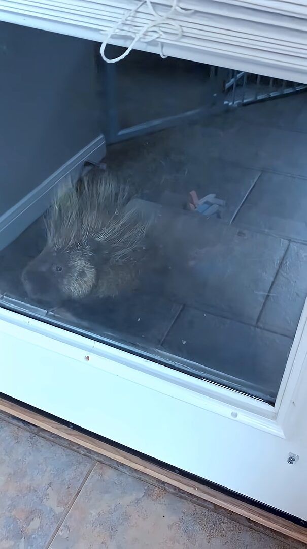 3. 窓をカシャカシャ。「お家に入れて~!」とばかりにアピールするのは・・野生のヤマアラシ!?【アメリカ・動画】
