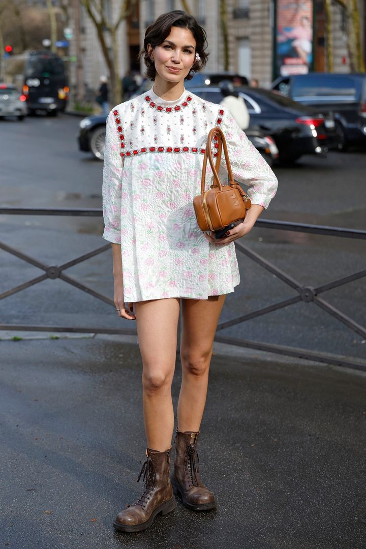 この春は、レトロムード漂うミニワンピースが流行の予感。大粒ビジューや花柄使いでロマンティックなベビードールワンピースは、コンバットブーツで辛口に引き締めるのがツウ。
