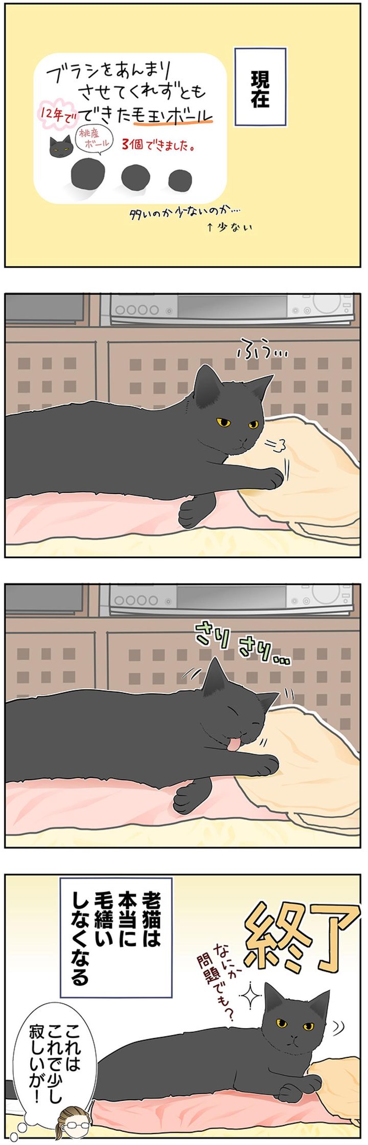 【マンガ・老猫日誌#42】心配が減ると寂しくなる老猫との暮らし?19歳の元保護猫・桃姐
