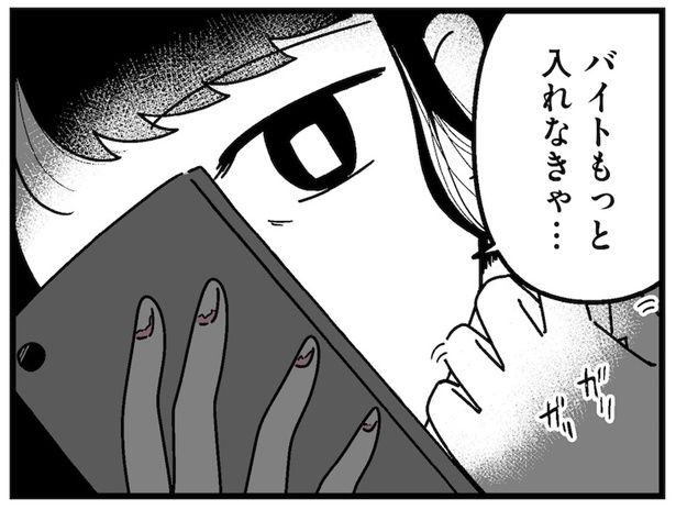 うみのさん:私自身も上京したてで余裕がなかった頃、アルバイトをしながら、ネイルが剥がれてもほったらかしだったことがあったんです。だから、美春の現状に対する焦りや苛立ち、お金持ちの友だちに対する劣等感からくるストレスを表現したくて。バイト漬けでネイルを直す余裕すらない、というギリギリの状況も表現しています。