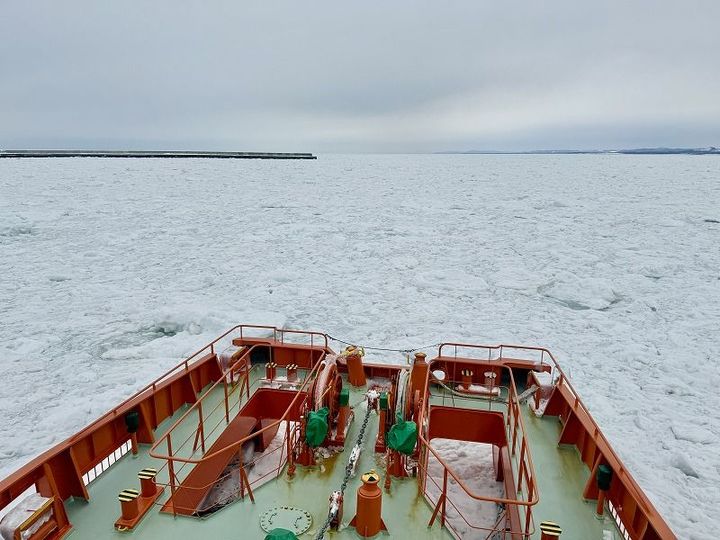 幸いガリンコ号は流氷の有無に関わらず運行をしてくれるのでクルージング自体は楽しめますし、船で沖合まで行けば流氷に出会えるかも!……と思い乗り場に向かうと。