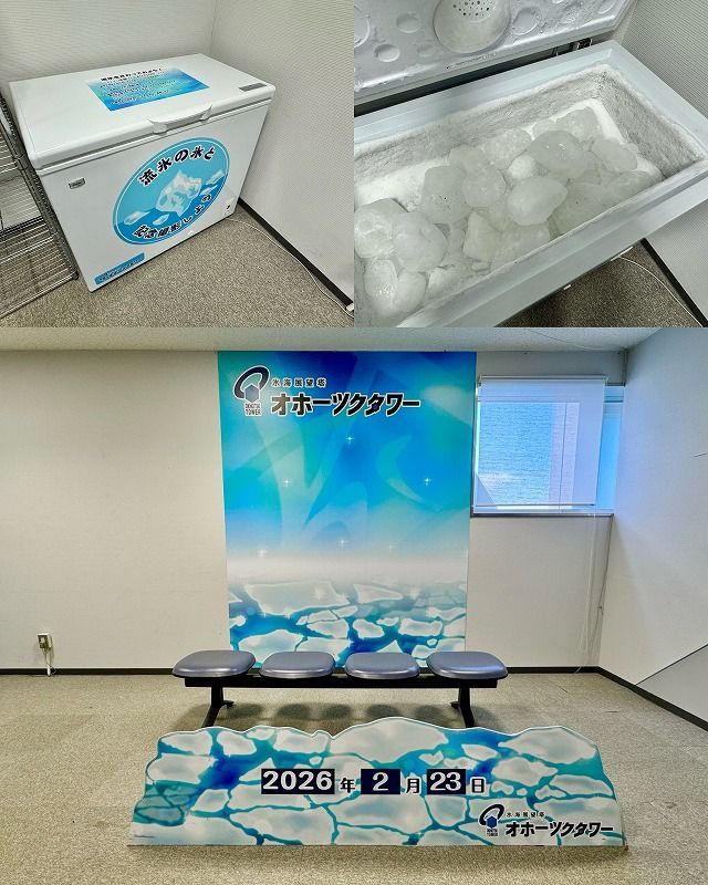 実物の流氷を手に持って記念写真が撮れるコーナーもありました!