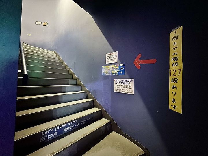 ビルの高さで5~6階相当になる127段の階段を下ると……(もちろんエレベーターもあります)