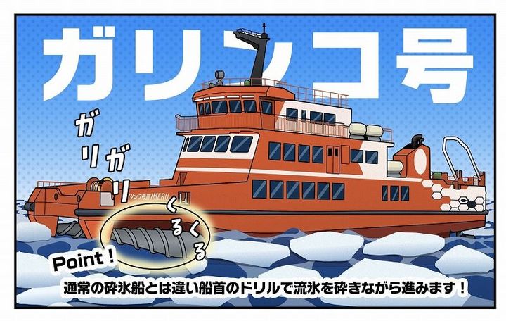 とくに海洋交流館の裏手が発着点になっている観光船 「ガリンコ号」 は、船主の巨大なドリルで流氷を砕きながら航行し、低緯度で流氷が見られる奇跡のオホーツク海を間近で体感できる大人気のアクティビティです。