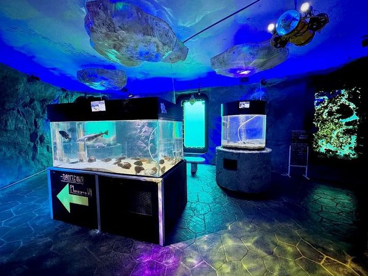 ビル5~6階相当の深さにある海底階だけが有料エリア(大人500円/小人250円)で、ミニ水族館と本物のオホーツク海の水中の様子を楽しめます。