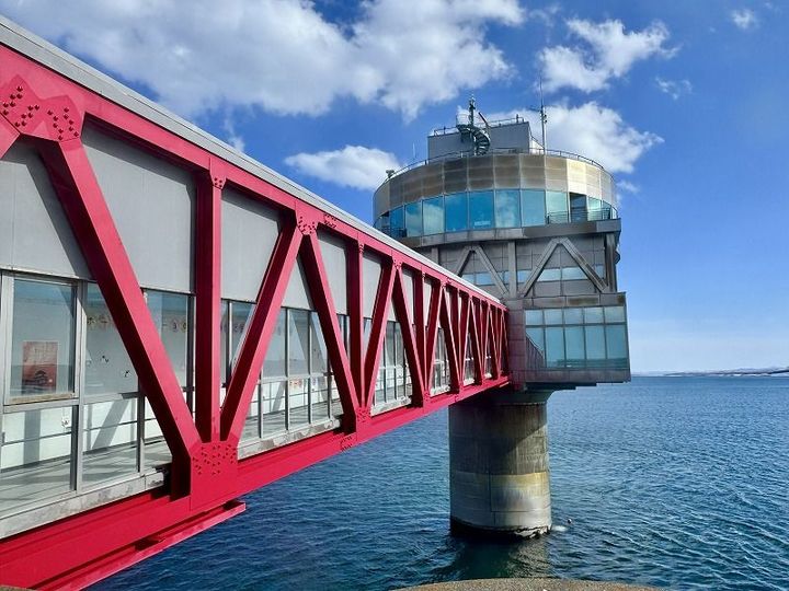 防波堤上を走るバスに揺られて到着したのは、海上展望施設「オホーツクタワー」です。