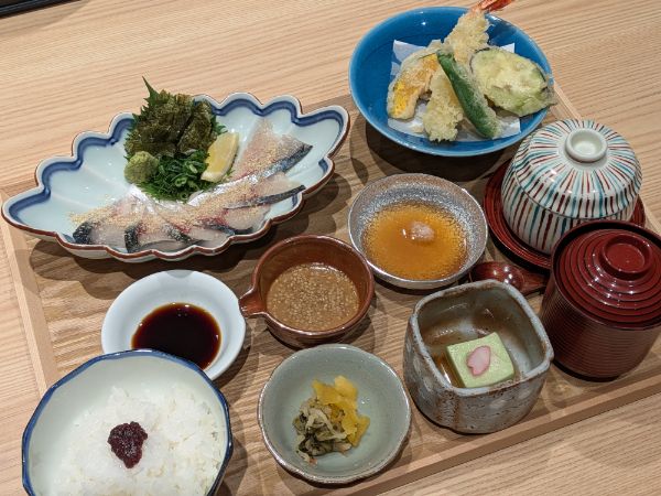 長崎の平戸から直送される新鮮な「なつ香サバ」を使用した「胡麻鯖膳」(3300円)。