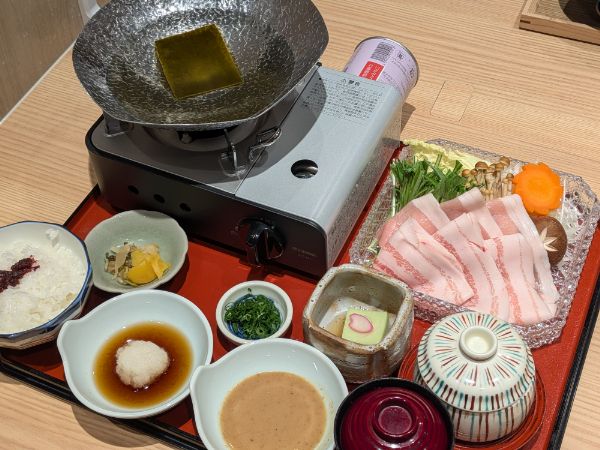 福岡・糸島ブランドの豚肉2種(ロースとバラ)を使用した「糸島豚しゃぶ膳」(3850円)。