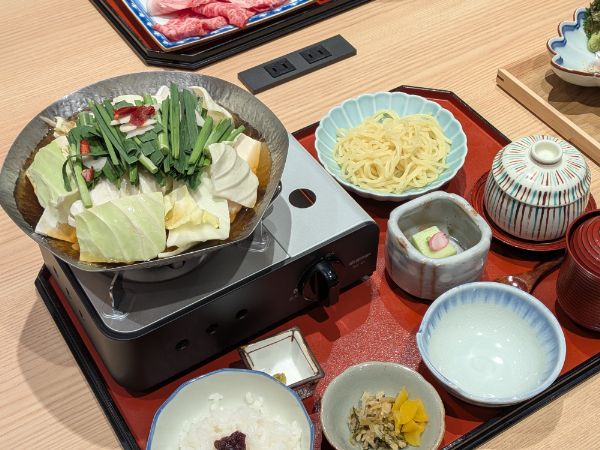 新店舗では、「総合的な博多料理を楽しめる店」というコンセプトのもと、従来の本格和食に加え、新たに「もつ鍋」や「豚しゃぶ」、九州産和牛を使用した「すき焼き」「しゃぶしゃぶ」、そして新鮮な「ゴマサバ」などをメニューに拡充。定番の「水炊き」や「寿司御膳」と合わせ、博多の美食を一堂に堪能できるラインナップを揃えています。