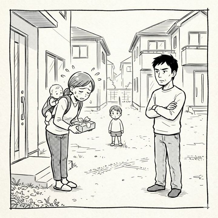 「勝手に敷地に入られるのは困るんですよ」と苦情を入れる隣人。数年後、隣人に子供が生まれると、態度が一変