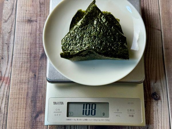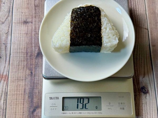 通常、コンビニおにぎりのごはんの重さは100g前後が一般的ですが、このおにぎりは192g!