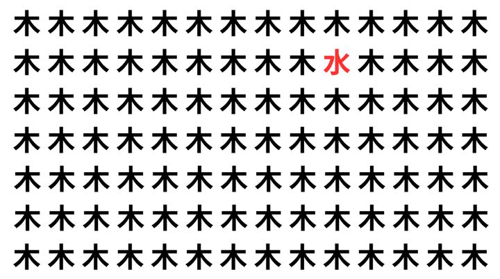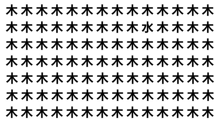 たくさんの「木」の中に、よく似た別の漢字が1文字だけ隠れています。