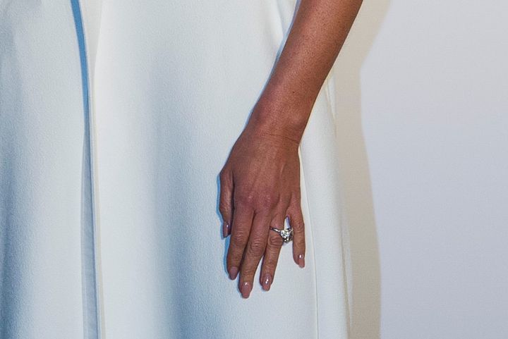 推定価格:約200万ドル(約2億4200万円)しばらくの時を経て、2015年に追加されたのは、彼女のコレクションでは珍しいラウンドカットのダイヤモンドリング。中央の石を小粒のダイヤモンドで囲むヘイローセッティングに、サイドにもダイヤモンドを配したデザインは、流行に左右されないタイムレスな美しさが特徴です。
