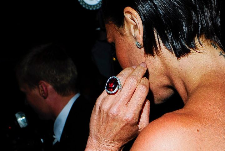推定価格:約670万ドル(約6億2300万円)数々の婚約指輪を所有するヴィクトリアのコレクションのなかでも、最高額といわれているのが、この15カラットの深紅のルビーのリング。ホワイトダイヤモンドを贅沢に敷き詰めたバンドが、ルビーの奥行きのあるカラーをより一層引き立てています。