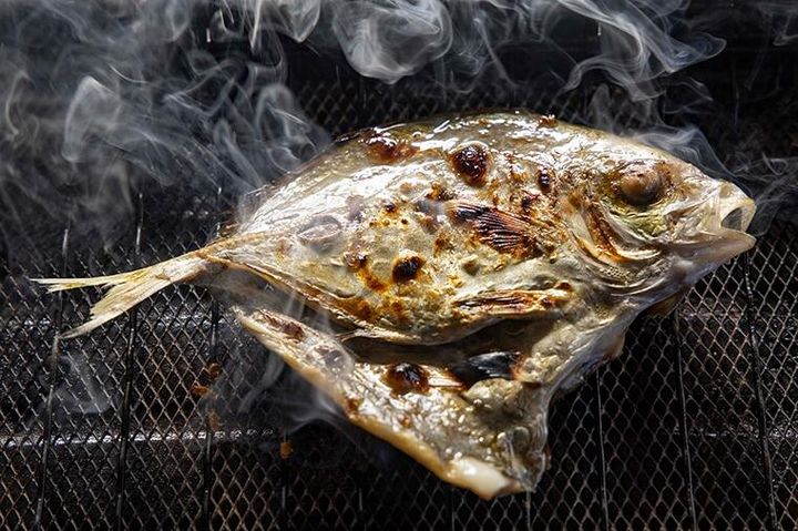 魚は焼いたときの煙の量でも脂の多少がわかる。カイワリは煙がどんどん出てきた。表面が少し焦げてもいいので、両面をしっかり焼こう。