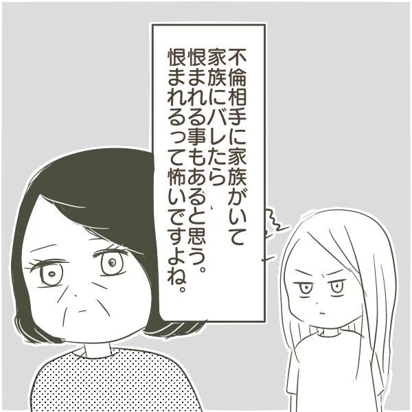 父の不倫で母は体調を崩したり、家族関係もギスギスして、私は父と不倫相手を恨みました。誰かに恨まれるって怖いですよね。私は今2人の子どもと夫と4人で幸せに暮らしていて、この幸せが壊れないといいなと頭のどこかで思っています。一種のトラウマみたいなものです。