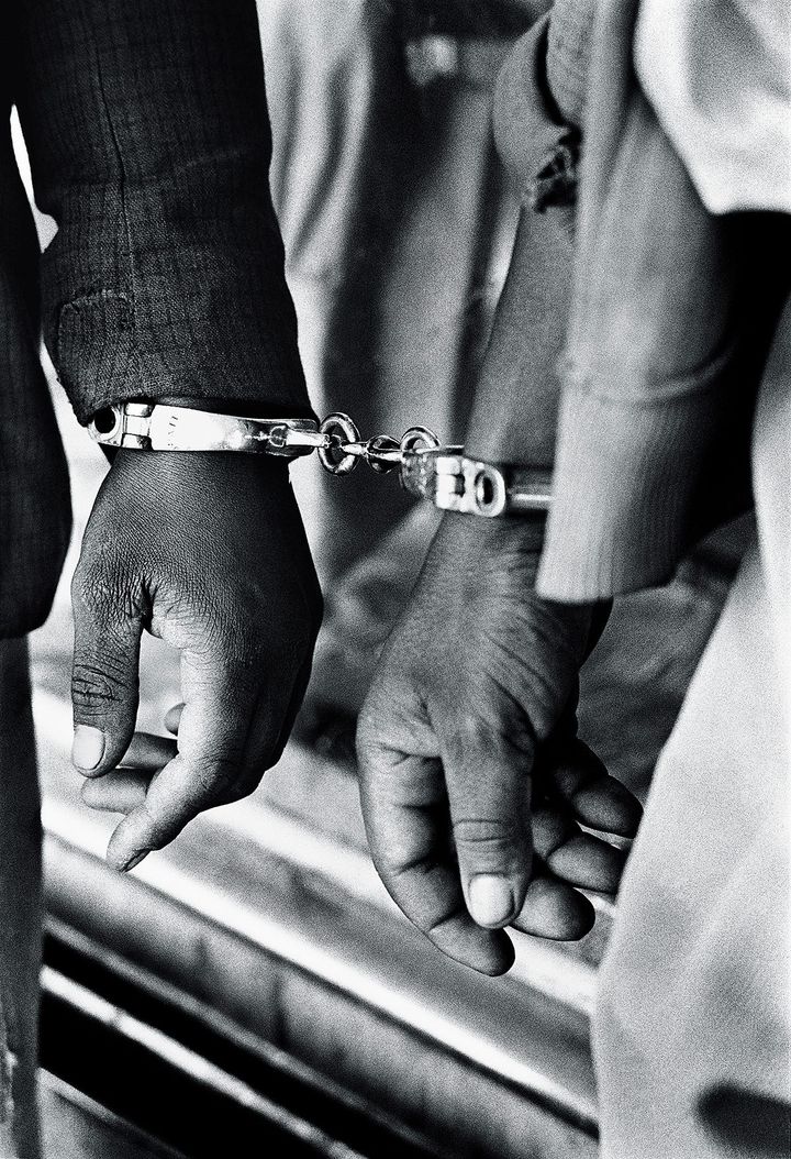 Handcuffed blacks were arrested for being in a white area illegally, South Africa,1960s. (C) Ernest Cole / Magnum Photos