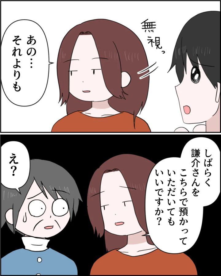 今さら何を言っているのでしょうか。もう謙介の言葉は私に何も響きません。私は謙介を無視して「あの・・それよりも、しばらく謙介さんをこちらで預かっていただいてもいいですか?」と義母に問いかけました。義母は驚いた様子で「え?」と困惑の表情を浮かべました。