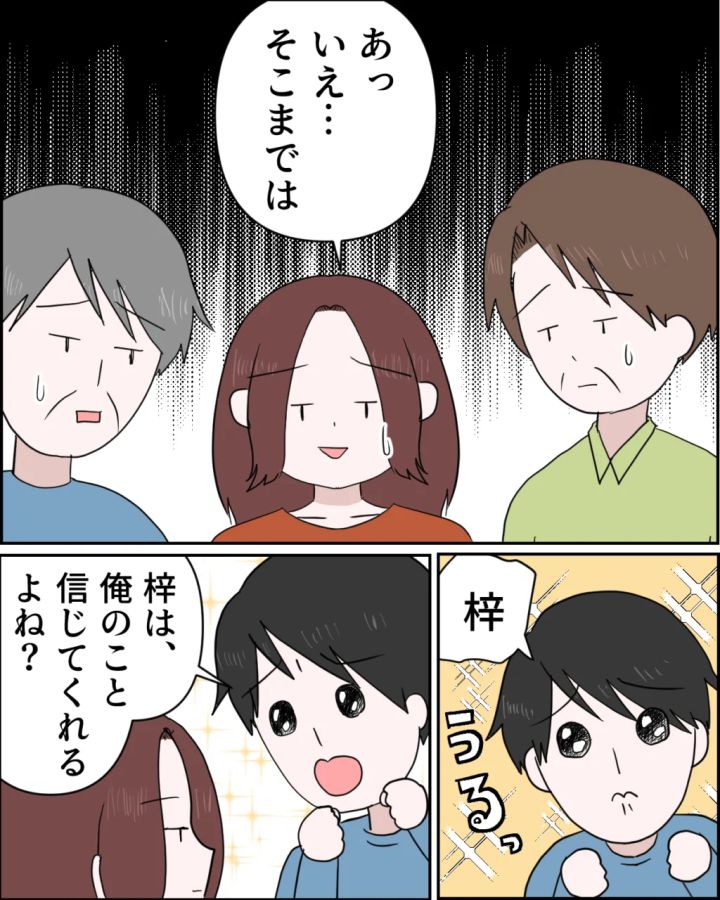 謙介があかりちゃんに送ったおじさん構文の浮かれたメッセージを見た義両親や舞花ちゃん、叔父さん、叔母さんは絶句。ここまできても「やましいことは何もない」と言い張る謙介でしたが、事態を理解した叔父さんは私に土下座までして謝罪し、義父も「なんの言い訳もできない」と頭を抱えました。