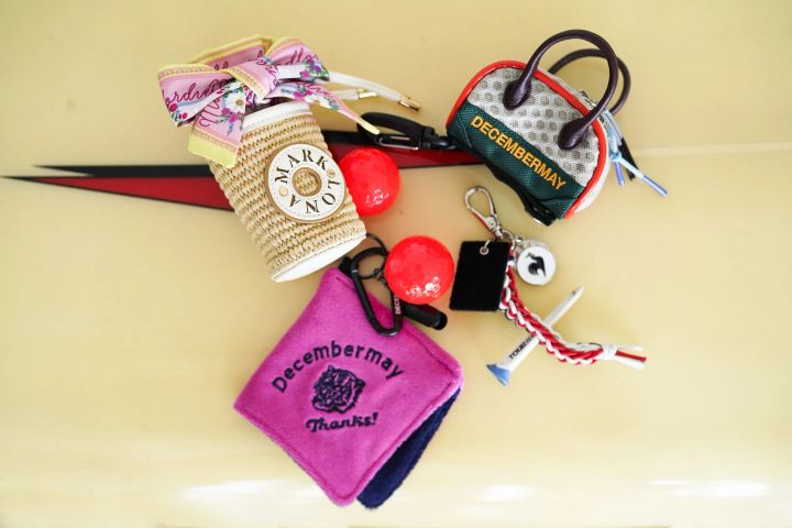 バッグのストラップやスカートに付けて楽しむボールポーチやボールタオル、ティーチャーム。ユニークな色使いや素材使いのものがこの春はいっぱい見つかります。