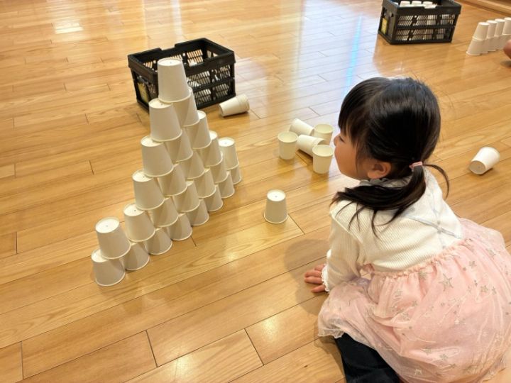 積み木ならぬ「積みコップ」で遊べるコーナーでは、娘も夢中になって遊んでいました♡