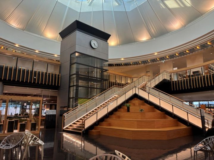 他にもバッグや洋服が作れる「Fashion Lab.」や市民が活動を行う「プロジェクトスタジオ」などユニークなコーナーも。商業施設のリノベーションに留まらない、図書館の新しいあり方を提案している点が評価され、2018年にはグッドデザイン賞も受賞しています。なかでも私は円形の広い天井がお気に入り♪天窓がとってもカッコいいんです!都城市立図書館に行かれた際は、ぜひ天井もしっかりチェックしてみてくださいね。