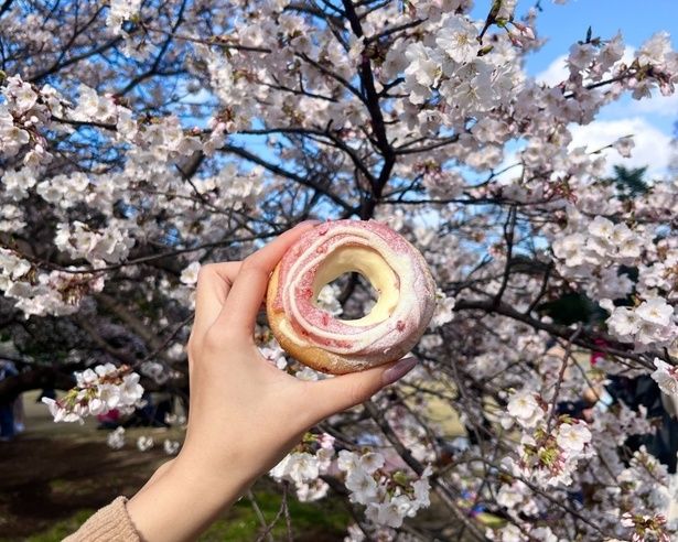 ピクニック会場で届いた箱を開けると、みんなのテンションは急上昇。店で買うのと同じ価格で豪華なドーナツのセットを届けてもらえるなんて、お得感たっぷりだ。ふわふわのドーナツと満開の桜は、写真映えもバッチリ。高クオリティの味を春の陽気と一緒に楽しめる、最高に贅沢な時間だった。