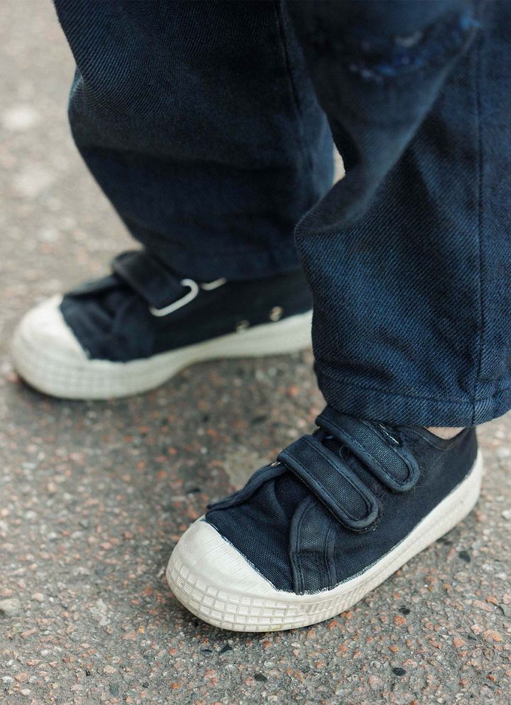 ベルクロで脱ぎ履きしやすい、『ノヴェスタ』のスニーカー。カラーはブラックを選んで上品度をさらにアップ。