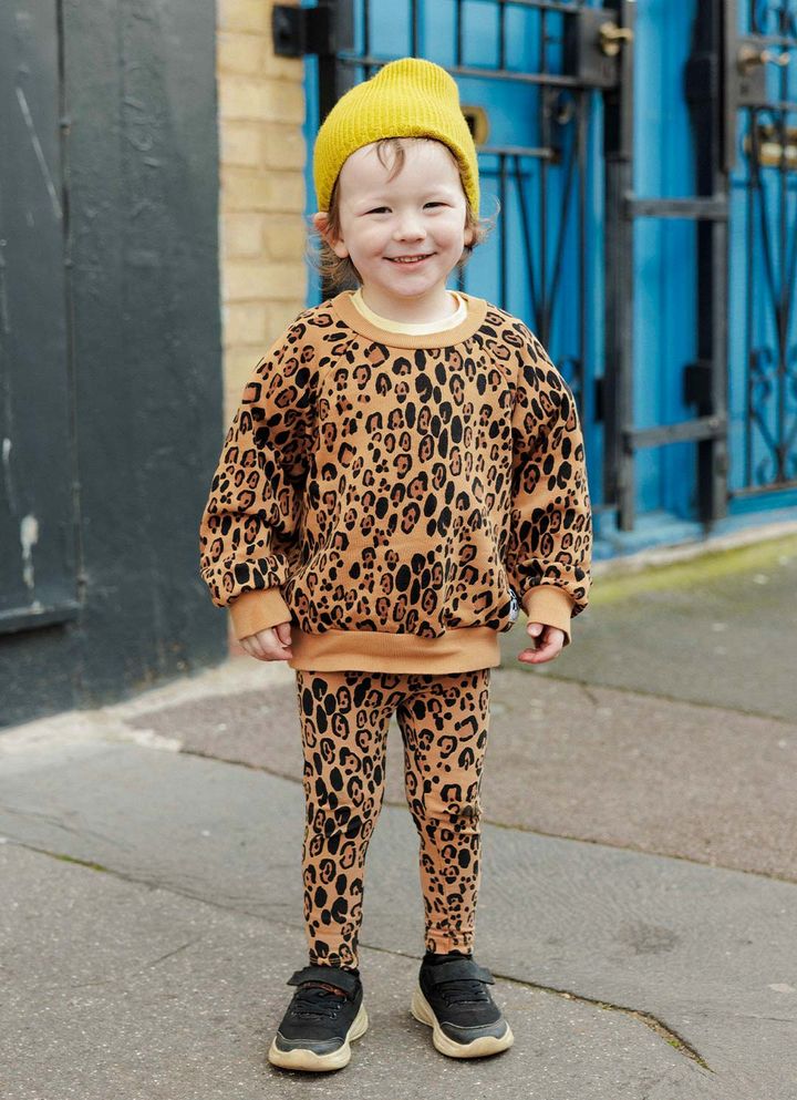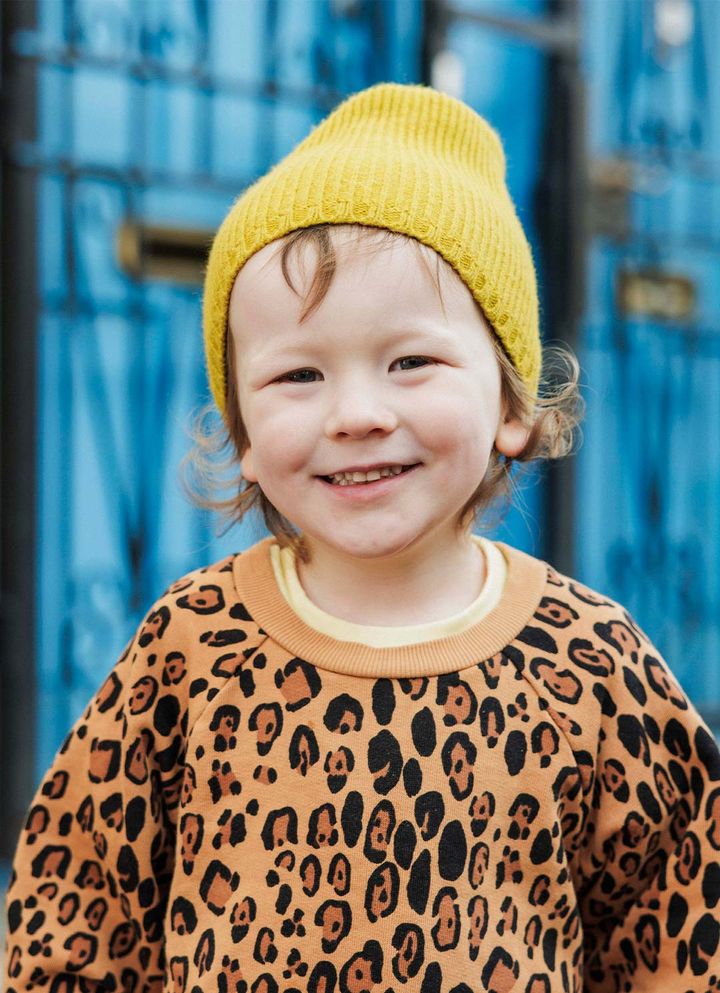 NAME:ブリンくん(3歳)『ミニロディーニ』の大胆なレオパード柄のセットアップで、みんなの注目を浴びていたブリンくん。それでもくどく見えないのは、フレッシュなレモンイエローが挿し色として使われているから。ミニロディーニのトップス&ボトムス、ドンシェのニットキャップ、プリマークのシューズ