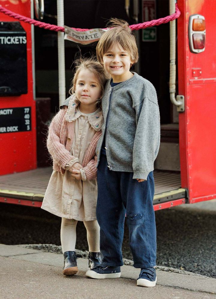 NAME:ソロモンくん(5歳)&マーセルちゃん(3歳)いつもの普段着にカーディガンを羽織るだけでなんだかちょっぴり上品に見えてしまうから不思議! 少し肌寒いロンドンの春にぴったりの体温調節のしやすいお役立ちアイテム。[boy]ジャカディのカーディガン(ママのお下がり)、ニオラルグのTシャツ、ザラのパンツ、ノヴェスタのスニーカー