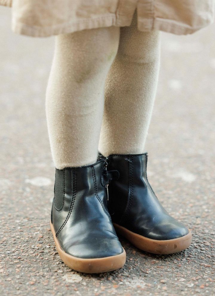 タイツもワンピースと同系色なので落ち着きのある印象。ブラックのサイドゴアブーツで、少し辛口に引き締めているのもおしゃれ![boy]トップス、ボトムス/ともにミニ・ロディーニ、ハット/ドンシェ、シューズ/プライマーク