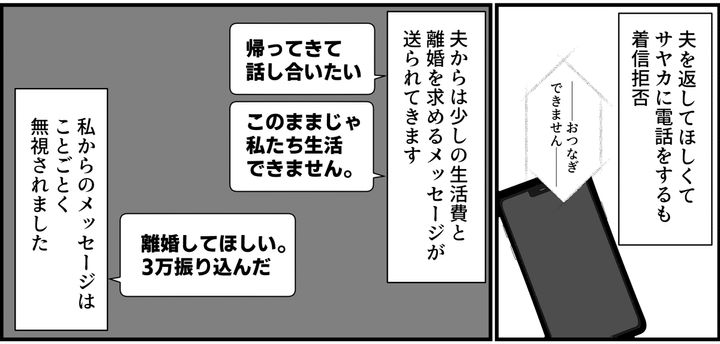 「これでは私たちは生活ができない」という連絡に関しては唯一返信が来て、カナタの生活費だと言わんばかりに2~3万円は振り込まれてくるのです。
