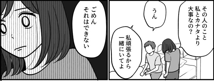 「お願い……あなたのことは許すし、もう責めないから。私にもカナタにもあなたがいないとだめなの。悪いところはなおすから」