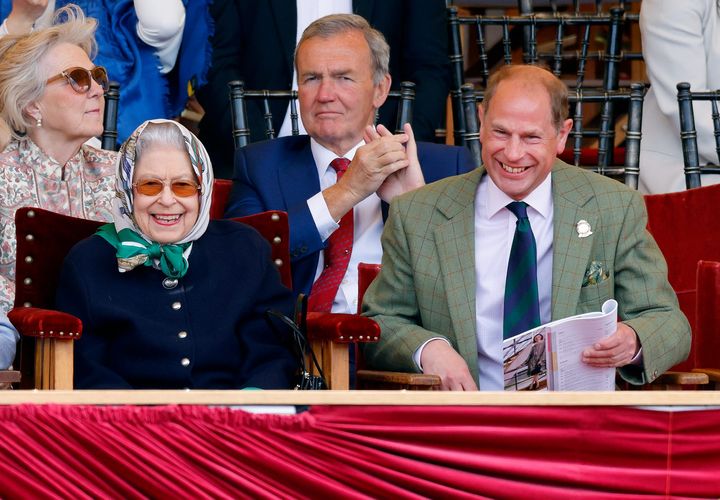 ロイヤル・ウィンザー・ホースショー2日目に、愛馬であるバルモラル・レイアが優勝するのを見守る女王とエドワード王子。